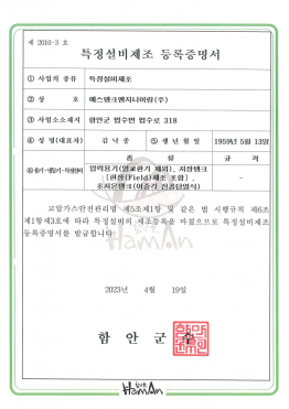 특정설비제조 등록증명서