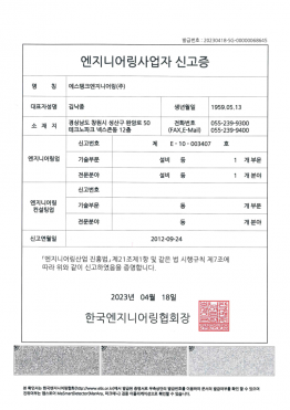 한국엔지니어링협회 신고증