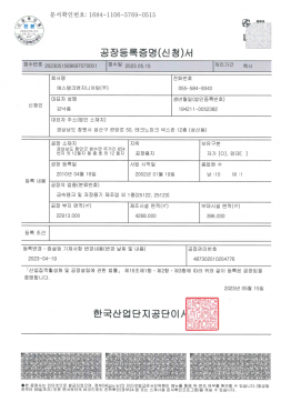 공장등록증명서(한국산업단지공단)