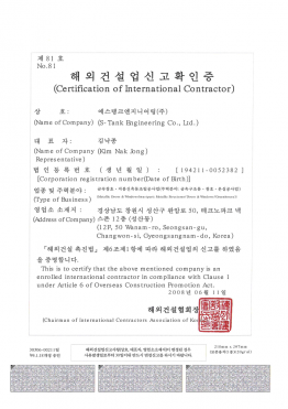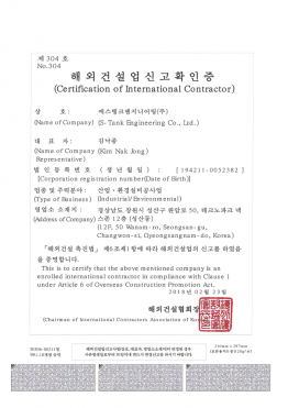 해외건설업 신고확인증(산업환경설비공사업)