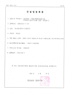 건설업등록증(금속창호·지붕건축물조립공사업)