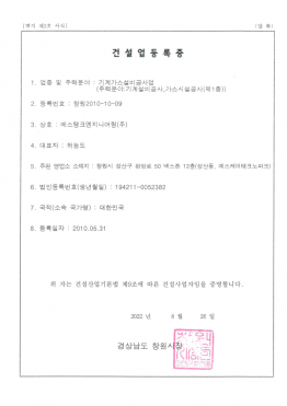 건설업등록증(기계가스설비공사업)